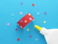 5-Jährige sind genau im richtigen Alter, um zu lernen, während des Bastelns Farb- und Klebstoffkleckser aufzuwischen. Halte ein Blatt saugstarkes Küchenpapier bereit, damit sie Kleckser wegwischen können, bevor sie trocknen.