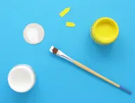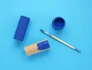 Male die Toilettenrollen mit blauer Plaka-Farbe an. Lass die Farbe trocknen und trage, falls nötig, noch eine Schicht auf.