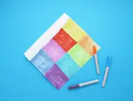 Lass währenddessen die Kinder mit den Filzstiften auf ein Blatt Küchenpapier los – je mehr unterschiedliche Farben, desto besser.