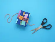 Steche mit der Ahle je ein Loch in ein Ende jeder Rolle. Ziehe ein Stück Schnur durch die beiden Löcher und mache einen Knoten an jedem Ende, damit die Kleinen das Fernglas um den Hals tragen können.