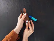 6. Zu guter Letzt: der Hasenbommel. Befestigt den weißen Pompom oder den Wattebausch auf der Rückseite eures Osterhasens.